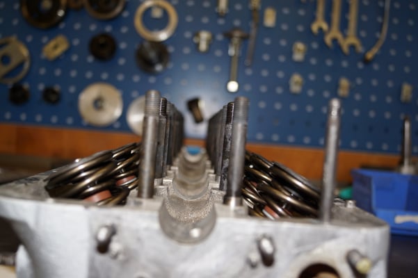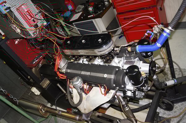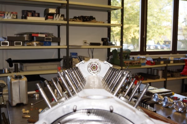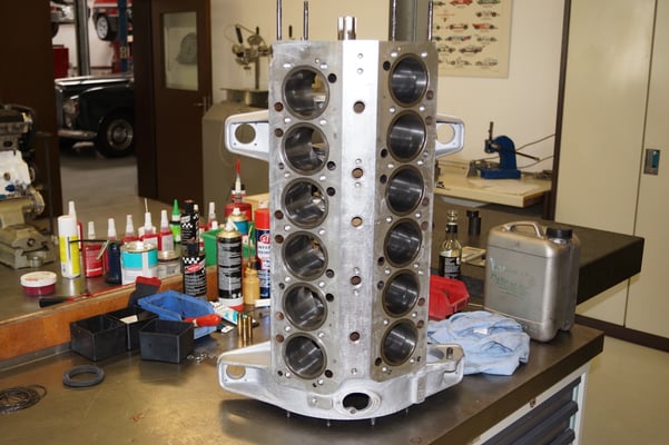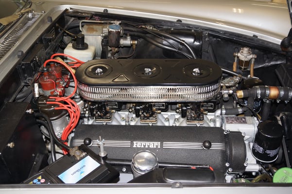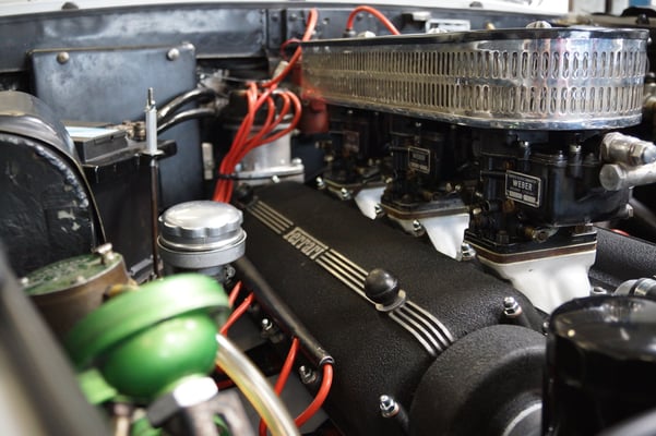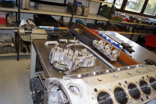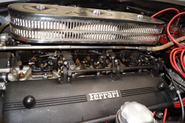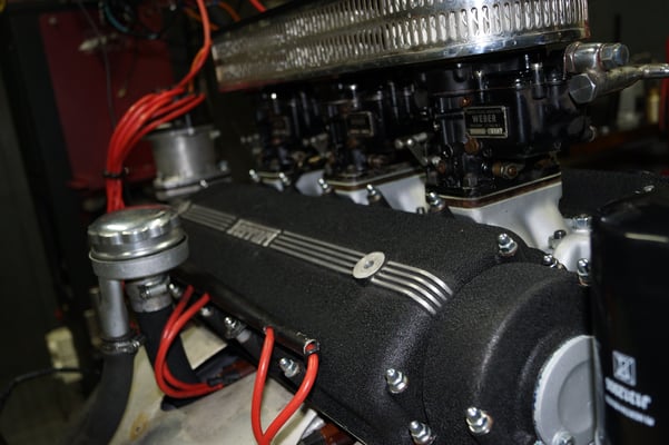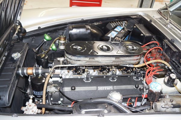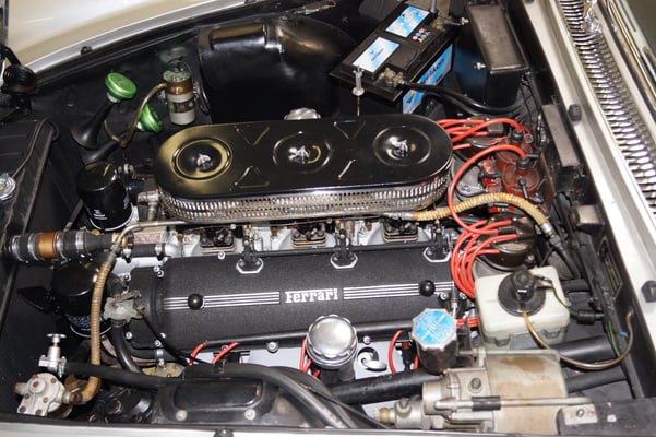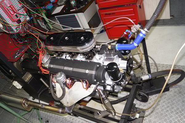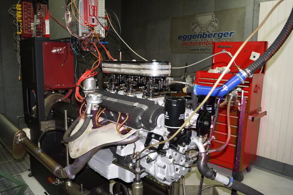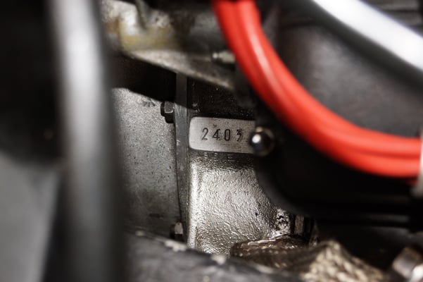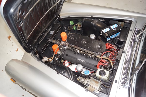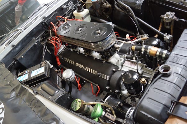 In Würde gealtert mit reichlich Kilometer. Zum Glück unrevidiert und nur wenig "verrepariert". Bei der Zerlegung des Motors zeigte sich eine ehrliche Haut mit Narben und Falten. Nach der umfangreichen Revision wurde das Herzstück vor dem Einbau auf unserem Motorenprüfstand eingefahren und sauber abgestimmt. Nun sind alle "cavallino rampante" wieder vollzählig vorhanden.