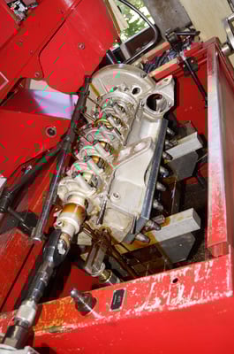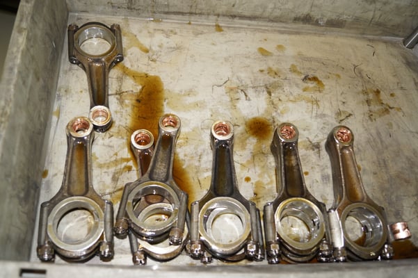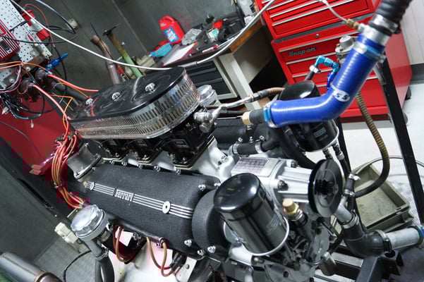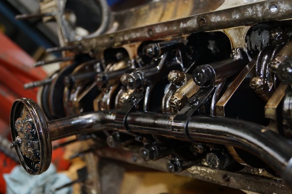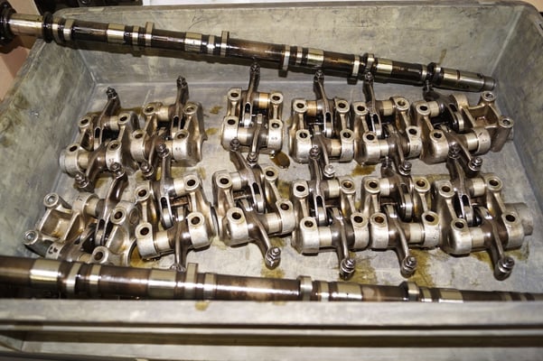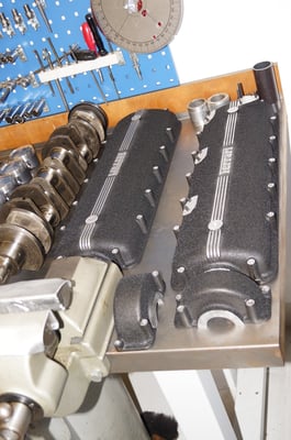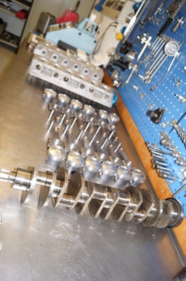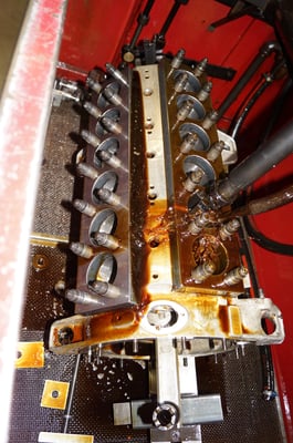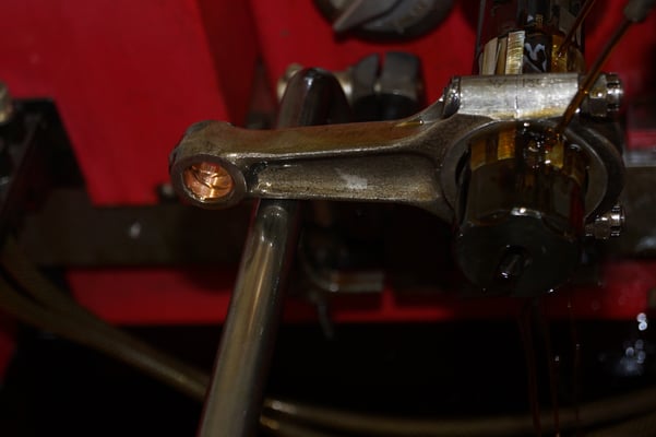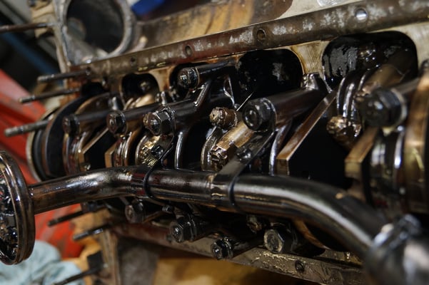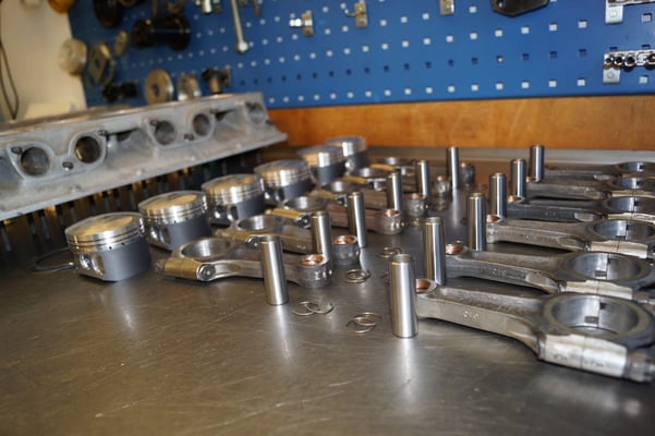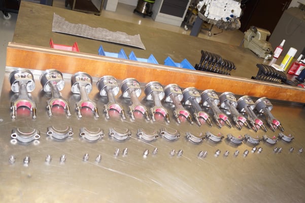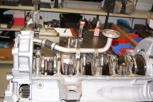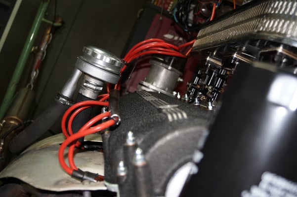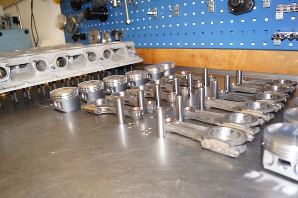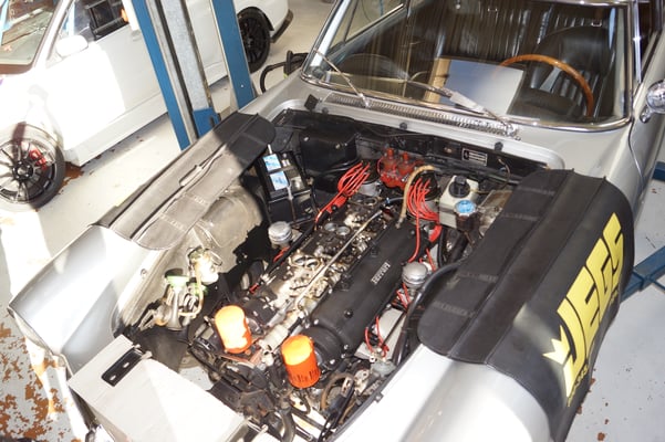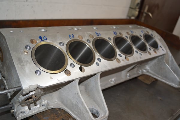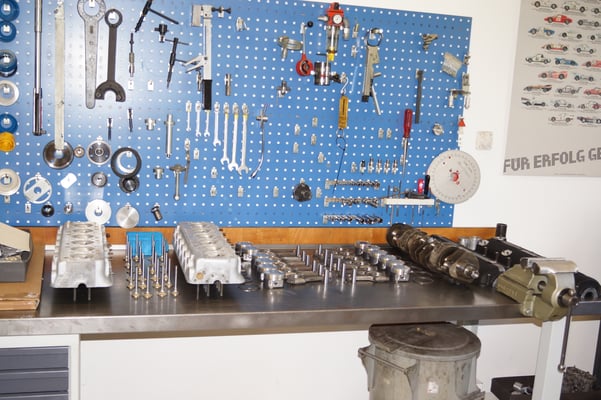 In Würde gealtert mit reichlich Kilometer. Zum Glück unrevidiert und nur wenig "verrepariert". Bei der Zerlegung des Motors zeigte sich eine ehrliche Haut mit Narben und Falten. Nach der umfangreichen Revision wurde das Herzstück vor dem Einbau auf unserem Motorenprüfstand eingefahren und sauber abgestimmt. Nun sind alle "cavallino rampante" wieder vollzählig vorhanden.