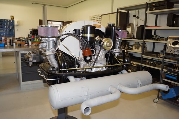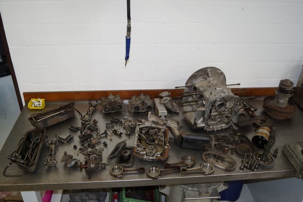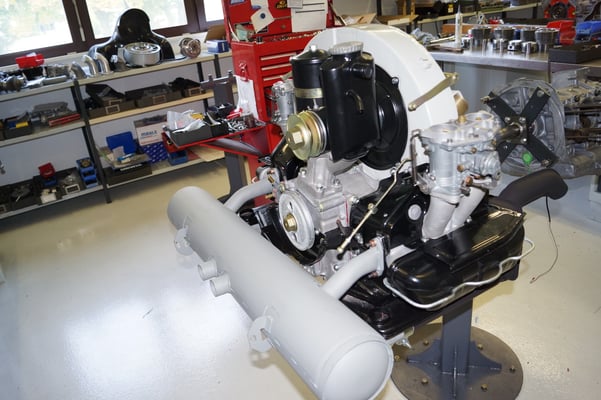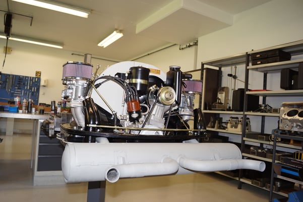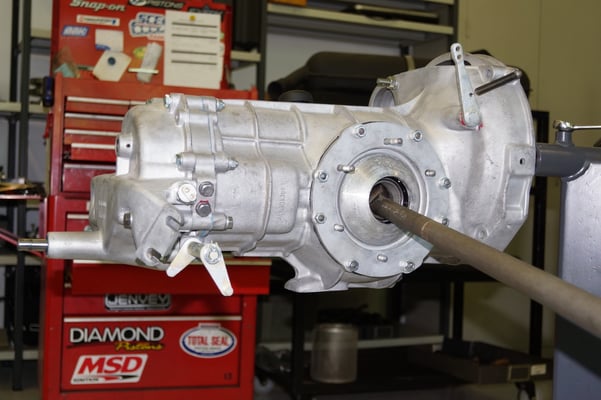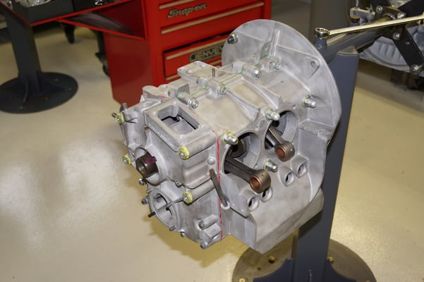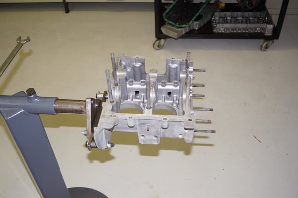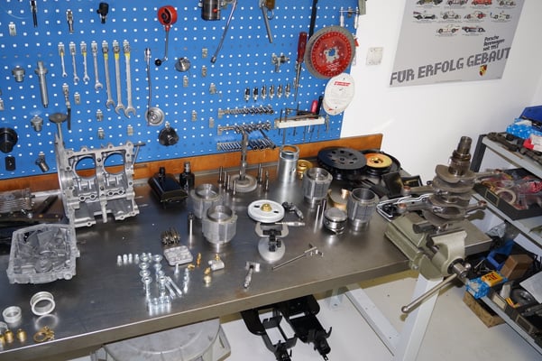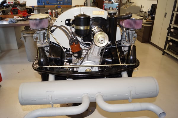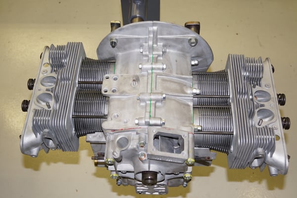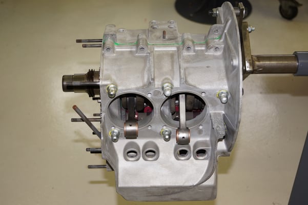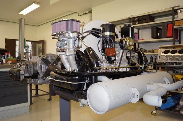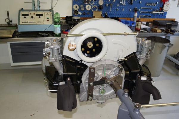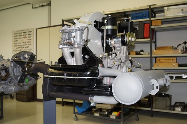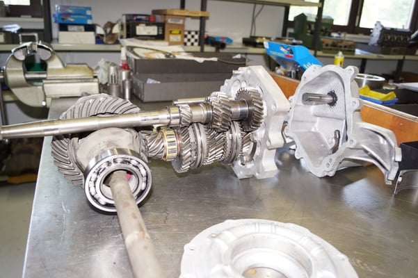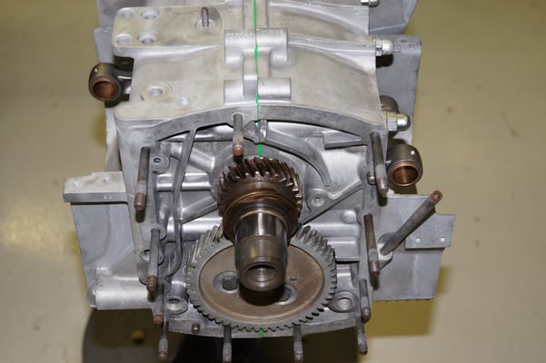 Ein Puzzlespiel angeliefert in mehreren Holzkisten ergaben nach der Revision und des Zusammenbaus ein Motor und ein Getriebe, passend zu einem 356 SC 1600.