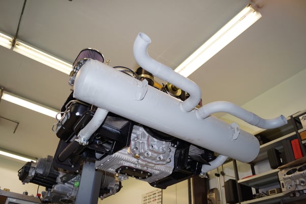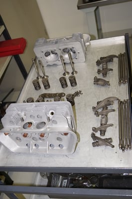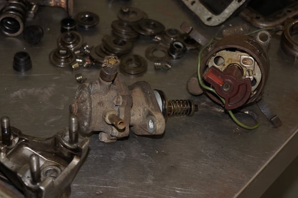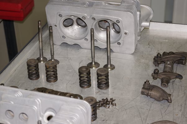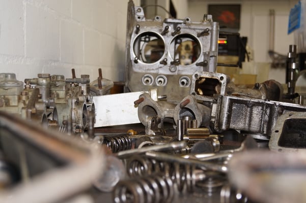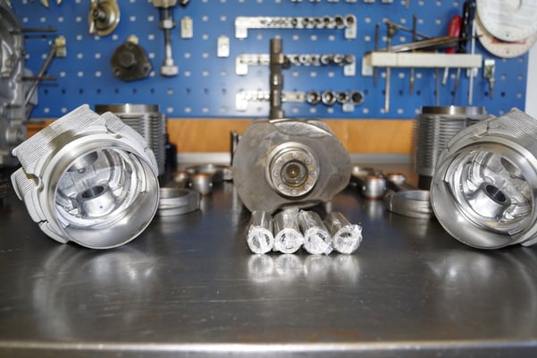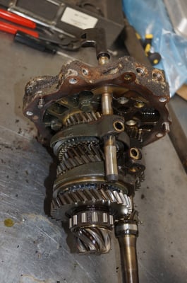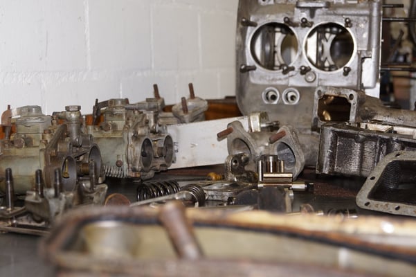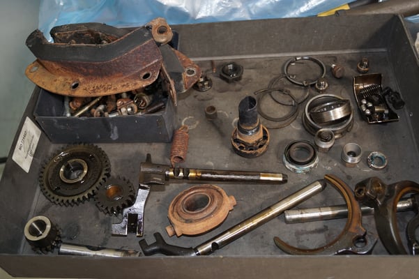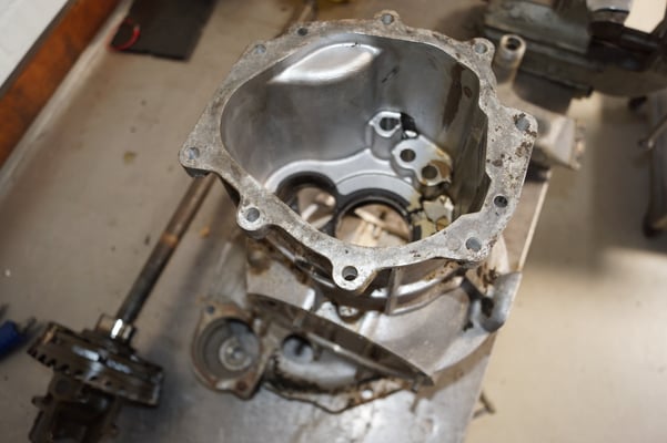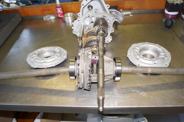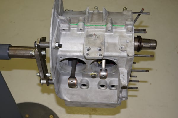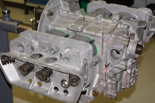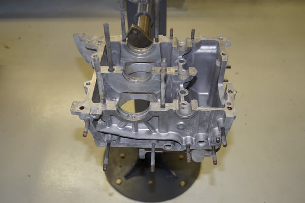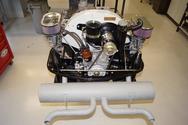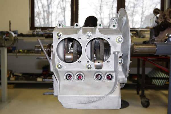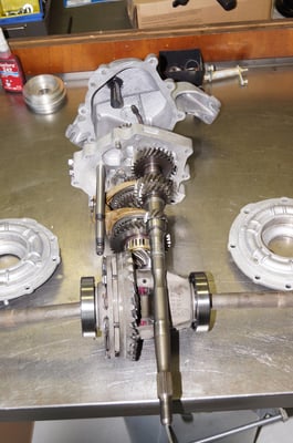 Ein Puzzlespiel angeliefert in mehreren Holzkisten ergaben nach der Revision und des Zusammenbaus ein Motor und ein Getriebe, passend zu einem 356 SC 1600.